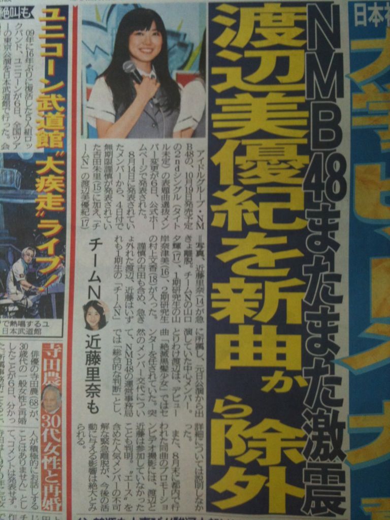 NMB48渡辺美優紀がイケメンモデルとお泊まり! 小林よしのりは意気消沈