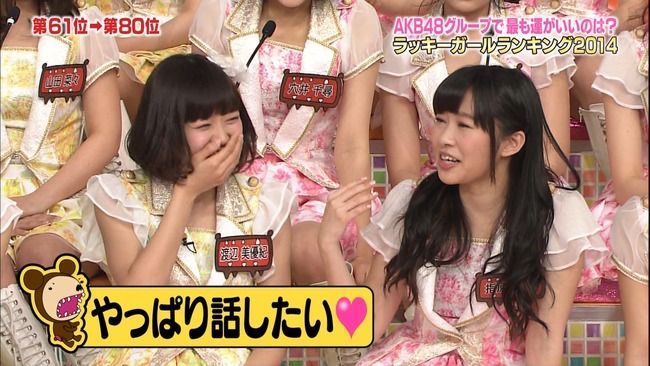 プリクラ流出後にメンバー全員厳重注意を受けていたのに、東京でりーちゃん(近藤里奈)、みるきー(渡辺美優紀)、しおきち(松田栞)と一緒に同じホテルに偶然泊まっていたサポ(ファン)と連絡を取り[主犯はもちろん、A]、スタッフにばれた。選抜発表まではこぶ平(秋元康)には連絡していなかったが、はずされたメンバーが上層部に密告。すべて、発端はAなので、これ以上は大阪のスタッフでは手に負えないと言うことでこぶ平(秋元康)に連絡。示しが付かないとのことで、その場にいた全員PVには出さないようにとこぶ平(秋元康)より通達。その後の4人のブログのモチベーションの低さで確認できる。ということが今回の現状。ソースはそのうち出てくるでしょう。