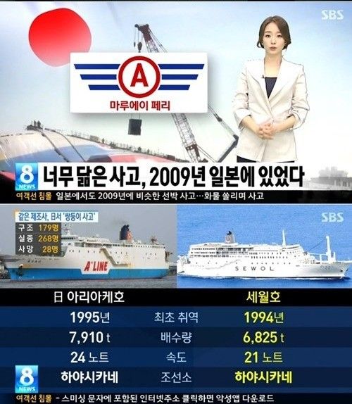 当時、転覆事故を起こしたありあけは、セウォル号を韓国に販売した『マルエーフェリー』所属の旅客船だった。