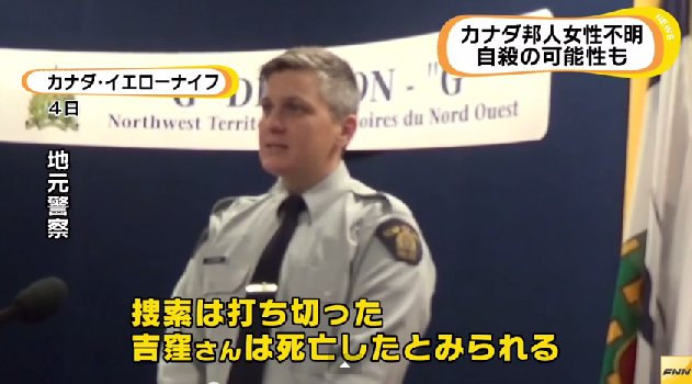 また、「事件性は見られず、すでに死亡していると思われる」として、自殺との見方を示した。カルガリーの日本総領事館は、FNNの取材に対し、「現時点でコメントする立場にない」としている。.