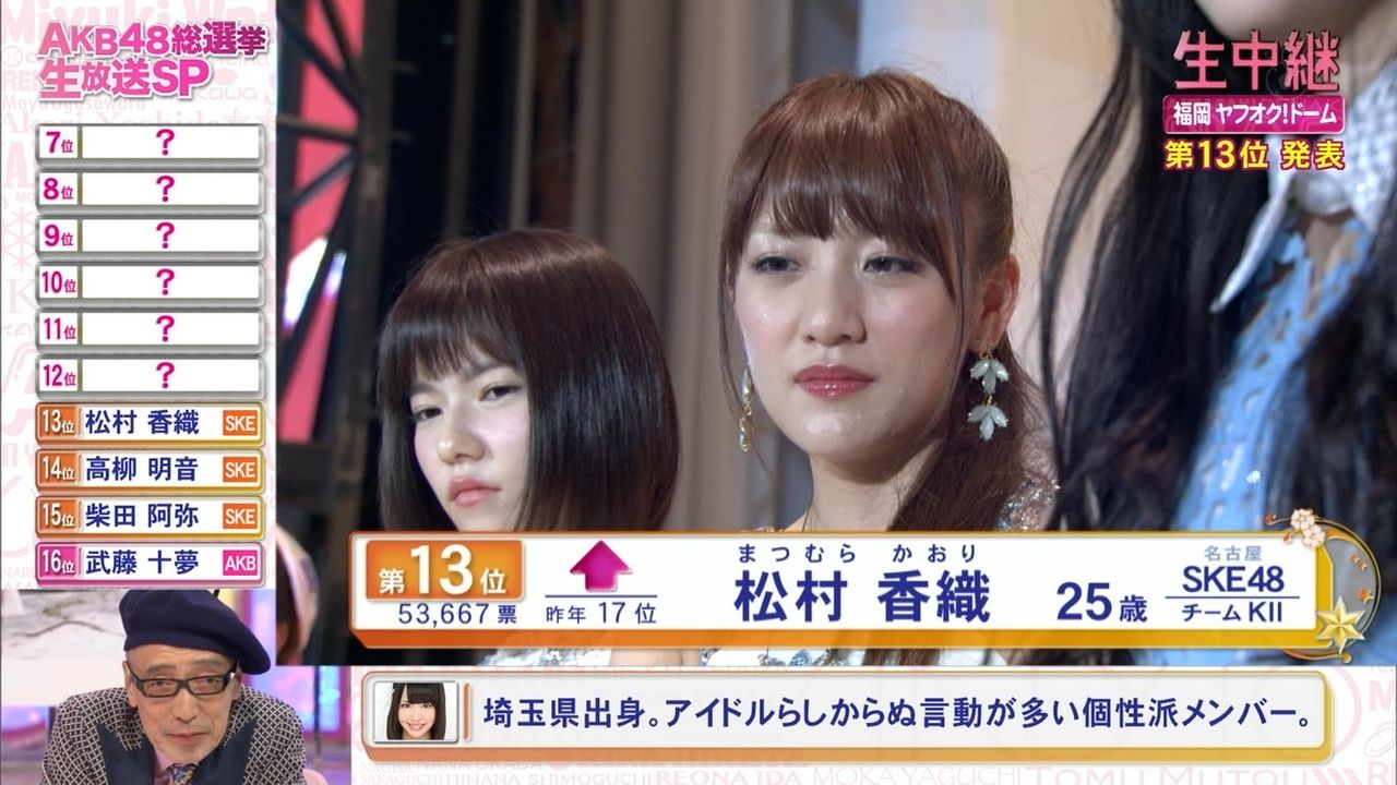 島崎の過去の順位は28位(10年)、圏外(11年)、23位(12年)、12位(13年)、7位(14年)。