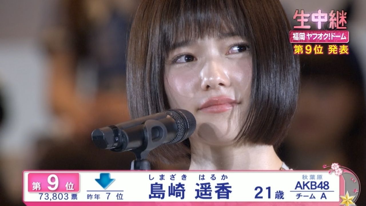 AKB48の島崎遙香(21)は9位で選抜入り。昨年は7位だった。ステージでは涙を見せた。