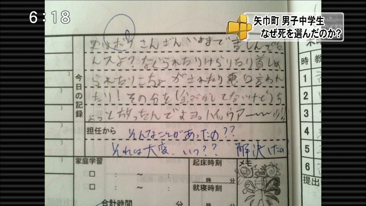 ・【岩手中2いじめ自殺】矢巾北中・村松亮くんと担任が交わした生活記録ノートの全容がヤバすぎる!!!2ch「女教師と犯人加害者の顔と名前特定して欲しい」【画像あり】