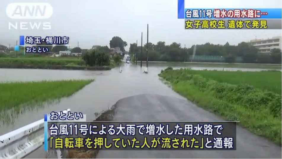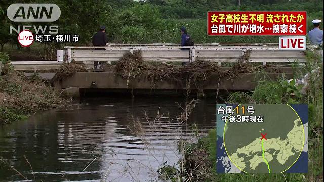16日、台風11号に伴う大雨の影響で増水していた埼玉県桶川市の用水路に人が流されるのが目撃され、警察などが捜索を続けた結果、18日、下流で女性の遺体が見つかり、遺体は行方が分からなくなっていた女子高校生と確認されました。