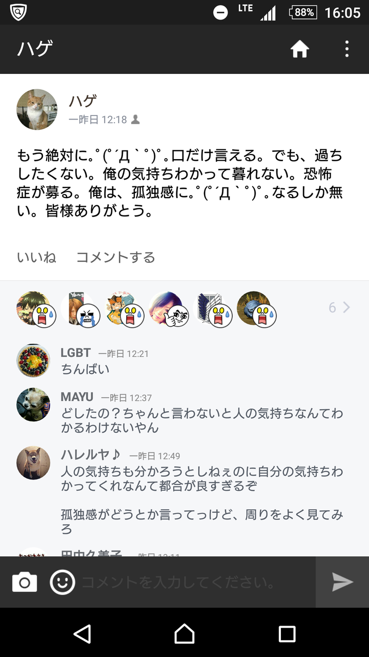 コメントくれんのはネットで知り合った浅い友達だけやぞ