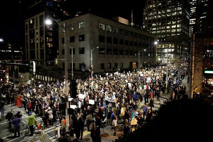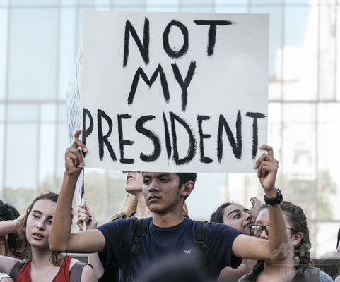 インターネット上では、ヒスパニック(中南米系)の移民やイスラム教徒に対する排外的な発言を繰り返したトランプ氏を非難し、抗議行動への参加を求める呼び掛けが続いた。大半が平和的な抗議活動で、警官隊との大規模な衝突などは起きなかったもようだ。