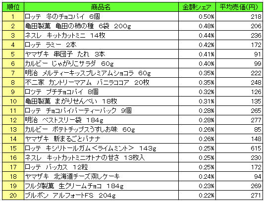 ロッテは同じような商品でも他社のより10円~30円くらい安いから売れてるランキングだともっと上に来る