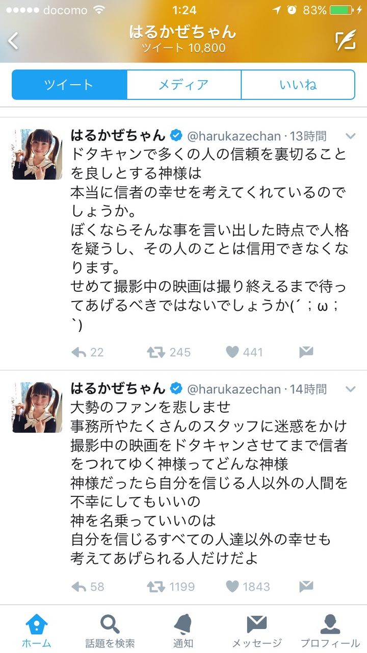 清水富美加の件でのはるかぜちゃんのツイートwww