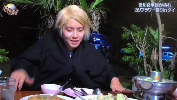 今回、手越は宮川大輔(44)とともにタイの「カリフラワー祭り」に参加。出だしから「オーケー! 行こうぜ行こうぜ祭りに行こうぜ~!」と、芸人顔負けのハイテンションで登場した手越は、ロケで宮川に顔中をシャンプーまみれにされたり、二人羽織で現地の料理を食べたりと、芸人さながらの“体当たり芸”を見せた。