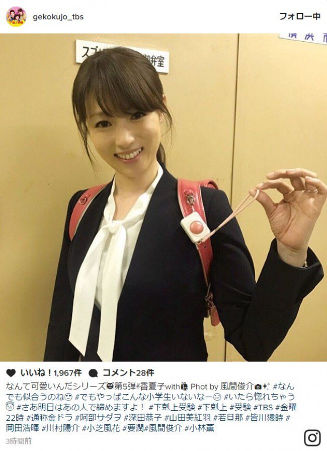 連続ドラマ『下剋上受験』(TBS系/毎週金曜22時)の公式インスタグラムにて2日、出演している女優・深田恭子のランドセル姿が公開された。