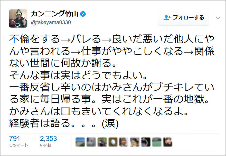 でも擁護してる芸能人はたいてい不倫してる