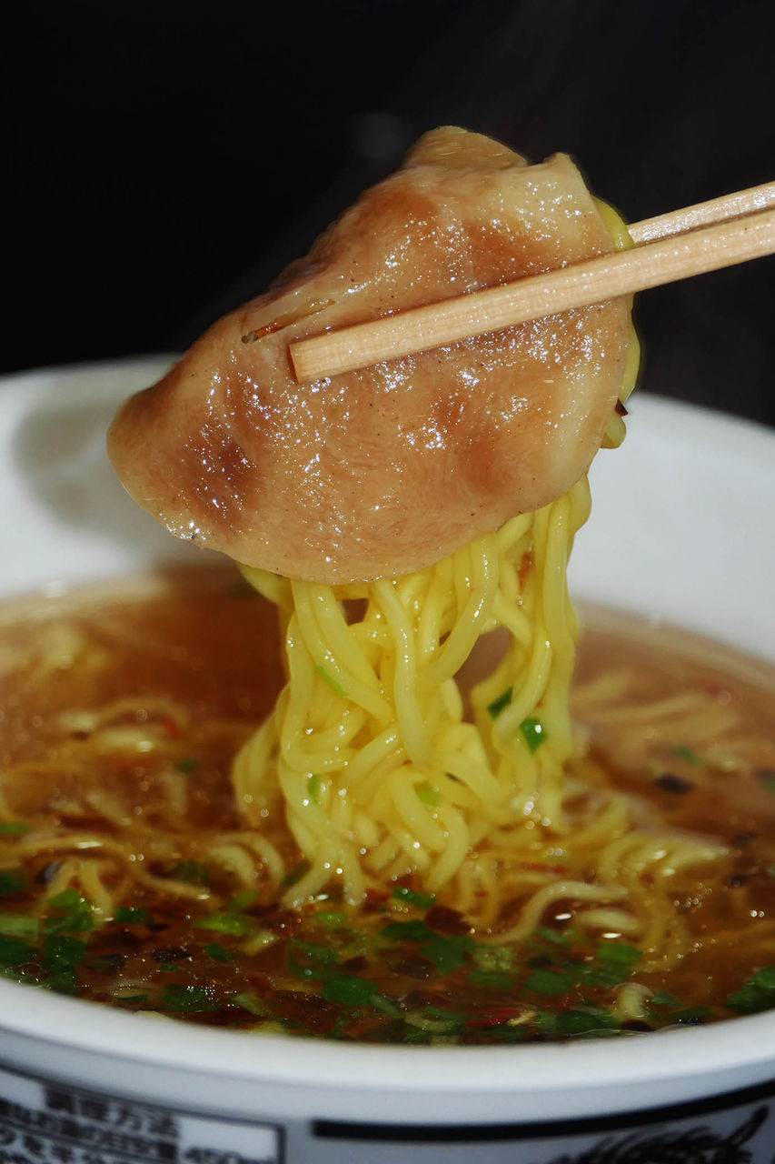 とにかく麺の旨味とコシが素晴らしい。非常に食べ心地が良いだけでなく、麺が掴むスープの量が多い多い! そのため必然的に旨味が増し、スープと麺が織りなすハイクラスなカップラーメンを堪能できるのだ。確かにこれ、完売してもおかしくないデキである。