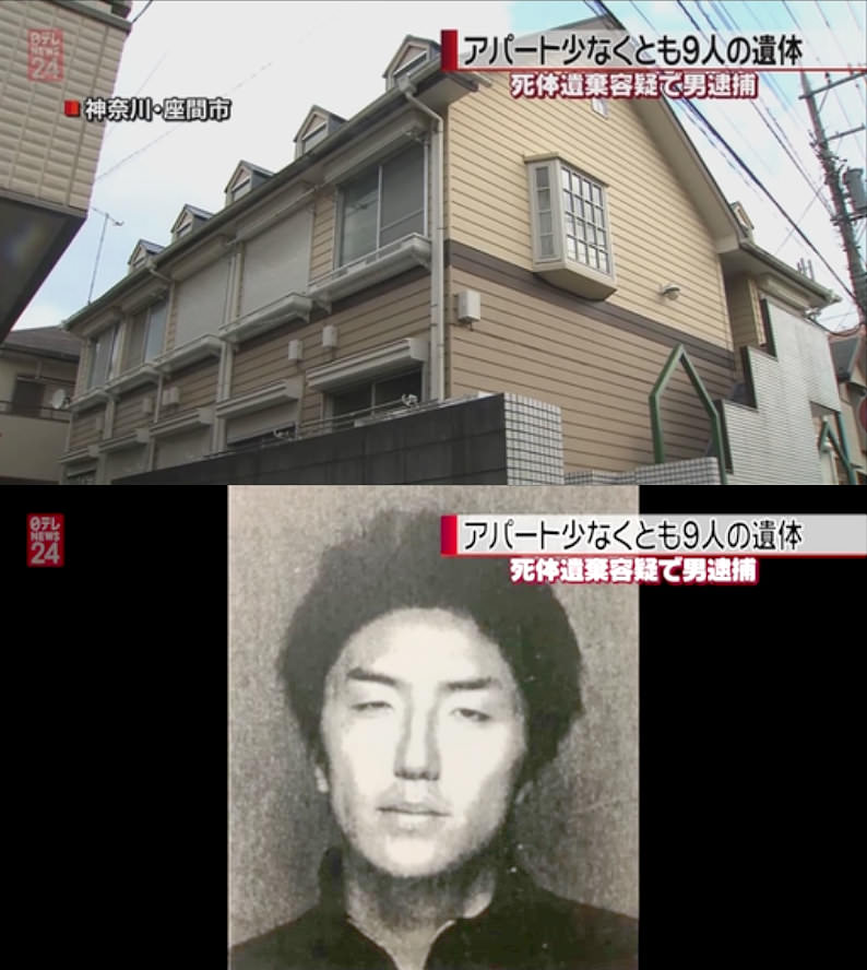 9人分の遺体が見つかったアパートは木造2階建てで、全12室ある。住人の40代男性によると、逮捕された白石隆浩容疑者(27)が引っ越してきたのは2カ月ほど前で、その頃から白石容疑者が住む2階の一室の周辺で異臭がしていたという。