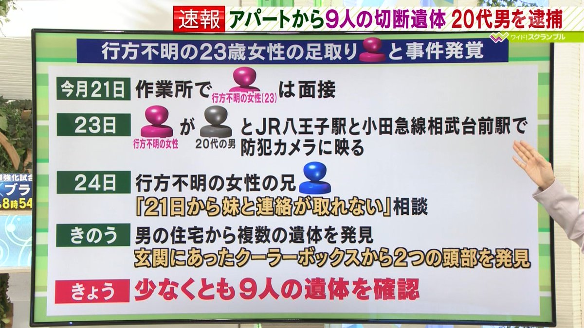 現場のアパートの前を毎日買い物で通るという主婦(23)は、「いつも見ているアパートがニュースで映し出されてぞっとした」。9人の遺体が見つかったことを知ると、「身近な場所でこんなことが起きるなんて。外に出るのもためらうくらい怖い」とこわばった表情を見せた。