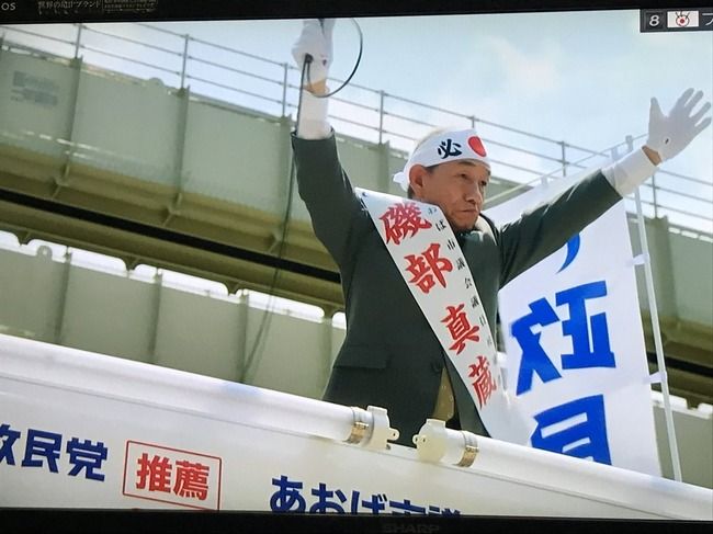 続いて、ヒロインの主婦の家庭が映し出される。夫婦で仕事を失ってパソコン上で職探しをしていたとき、市議選の存在を知り、主婦は唐突に立候補を決意。立候補したヒロインは、「政民党」の現職候補、磯部真蔵の演説を聞く。待機児童を大幅に削減し、「働く女性の味方」と訴える磯部に対し、ママ友の新聞社社員から「ウソばっかり」と聞いて......。このドラマでは、実在の政治家を連想させるような人物が次々と登場する。