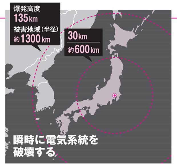 日本を狙うEMPだったら北朝鮮も見事に範囲に入る