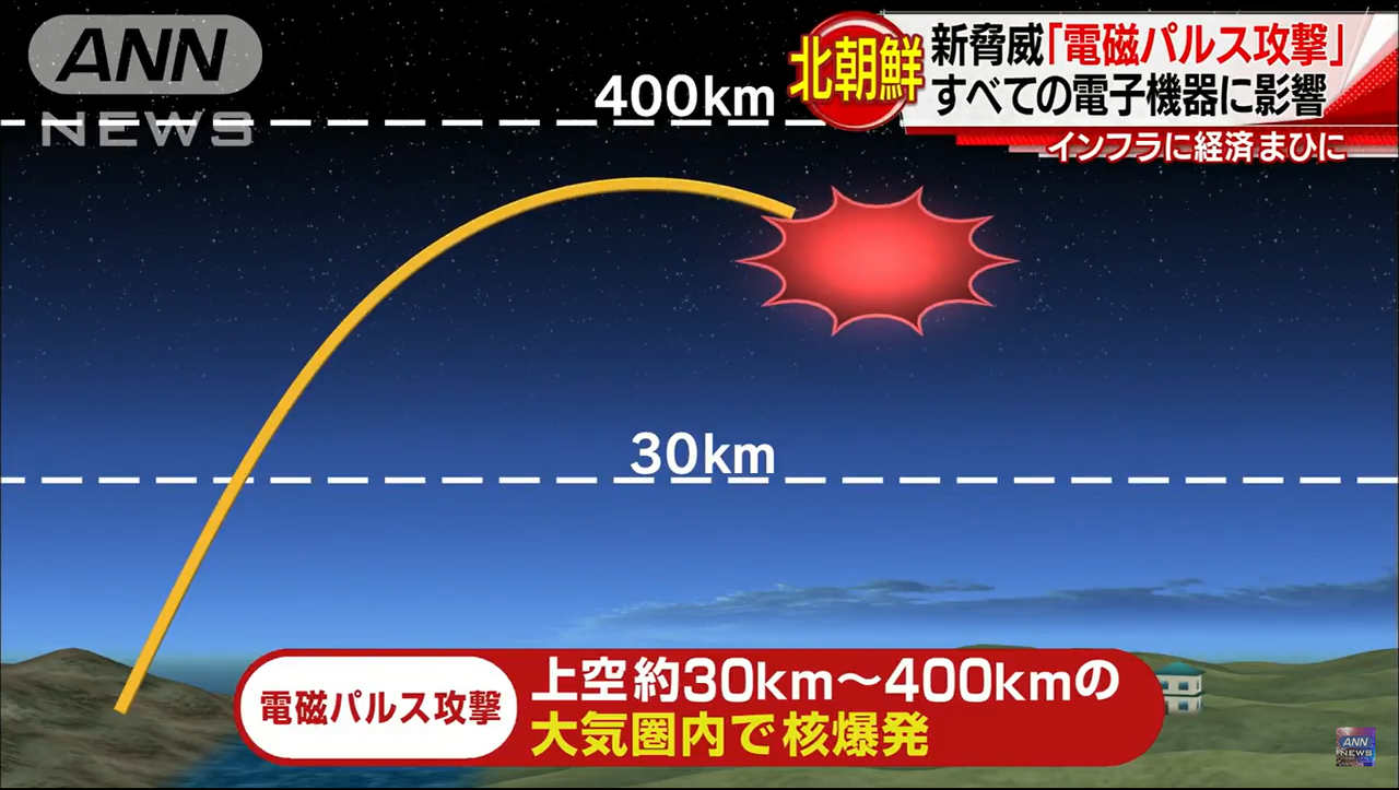 北朝鮮が核実験や弾道ミサイルで挑発を続けるなか、 9月3日の核実験を契機に「電磁パルス攻撃」にも言及し始めた。