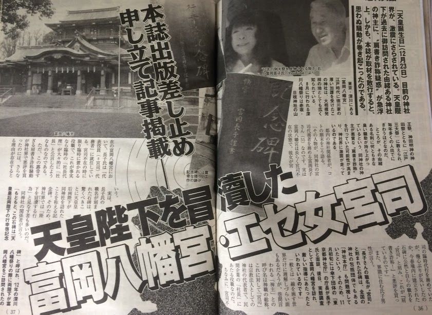実は女宮司がバケモノで先代の父親を呪いころし、弟が長年の苦心の末成敗?なんていう妄想が膨らむ。でも、ヤクザスタイルの画像見たら萎んだ。この人も呪われてるわ。