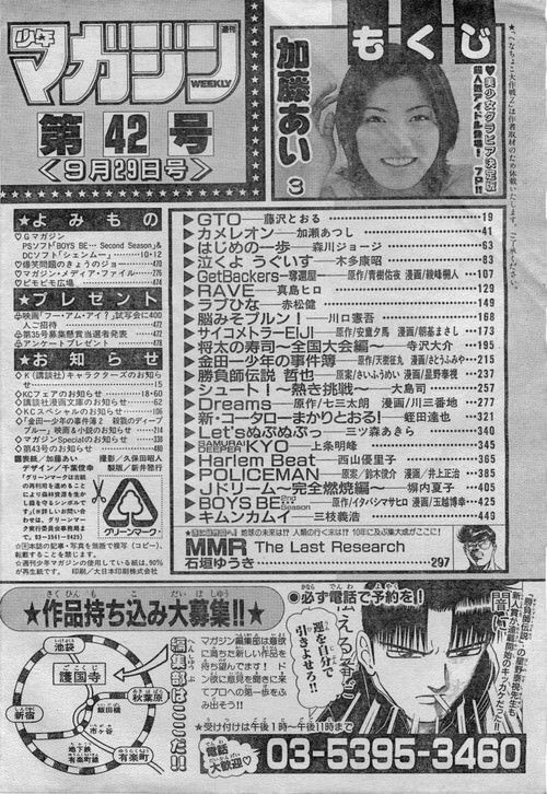 多数の女性芸能人を輩出しているオーディション企画ミスマガジンを始め、グラビアアイドルや人気女優などのカラーグラビアも積極的に行なっている。また、「マガジン一押し!若手アイドル○連発」などと銘打ってまだ知名度の低いグラビアアイドルをまとめて掲載する企画が不定期で行なわれており、中には乙葉や小倉優子など、その後知名度が高くなった女性タレントも出演していた。