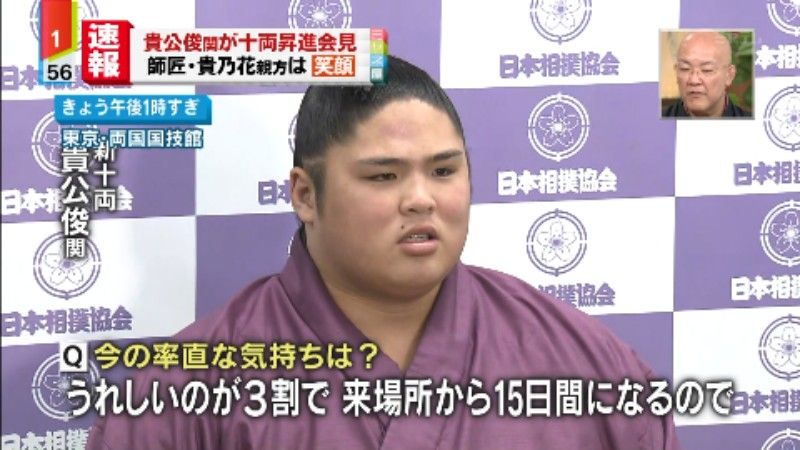 19日放送の日本テレビ系「情報ライブ ミヤネ屋」(月~金曜・後1時55分)では、冒頭で相撲の東十両14枚目・貴公俊(たかよしとし、20)=貴乃花=が春場所8日目の取組後、支度部屋で付け人の顔を殴打した件を特集した。