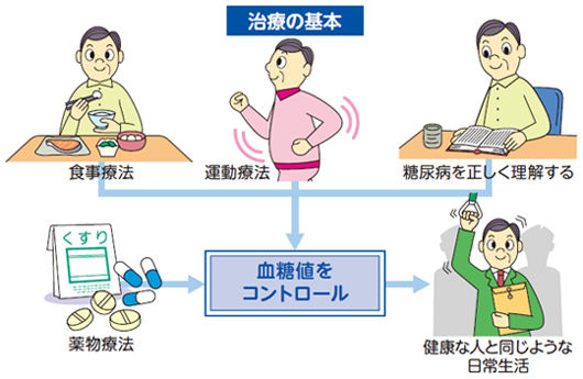 ひとことに血糖値が高いと言っても、無症状の状態から、著しいのどの渇き・大量の尿を排泄する状態、さらには意識障害、昏睡に至るまで様々であるが、これらをすべてまとめて、血糖値やヘモグロビンA1c値が一定の基準を超えている場合を糖尿病という。糖尿病は高血糖そのものによる症状を起こすこともあるほか、長期にわたると血中の高濃度のグルコースがそのアルデヒド基の反応性の高さのため血管内皮のタンパク質と結合する糖化反応を起こし、体中の微小血管が徐々に破壊されていき、眼、腎臓を含む体中の様々な臓器に重大な障害(糖尿病性神経障害・糖尿病性網膜症・糖尿病性腎症の微小血管障害)を及ぼす可能性があり、糖尿病治療の主な目的はそれら合併症を防ぐことにある。