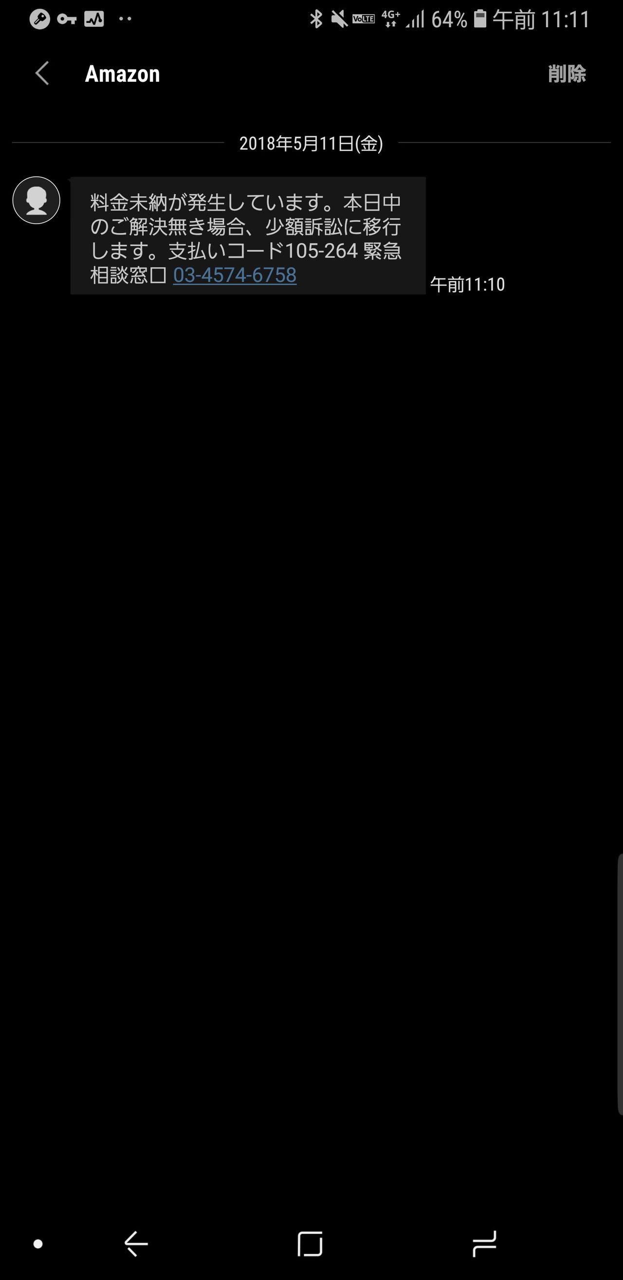 Amazonがsms送って来るわけないし、そもそも未納で何かを買うことは無理やろ