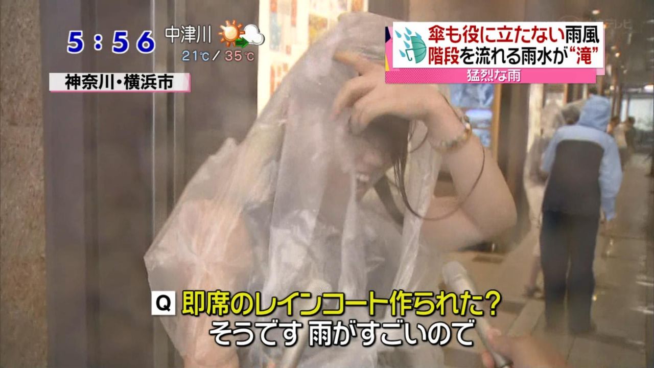 【画像】 大雨でスカートがペッタリになった女性を産経新聞が激撮