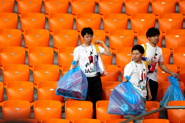 28日、ポーランド戦が行われたロシア南部のボルゴグラードでは多くの日本人サポーターが、試合のあと、スタジアムでペットボトルなどのゴミを拾い、ツイッターに動画が投稿されています。また、19日のコロンビア戦のあと、日本人とコロンビア人のサポーターが一緒にゴミ拾いをする写真が投稿されると、内容に共感する「いいね」の数は6万3000件を超えたということです。