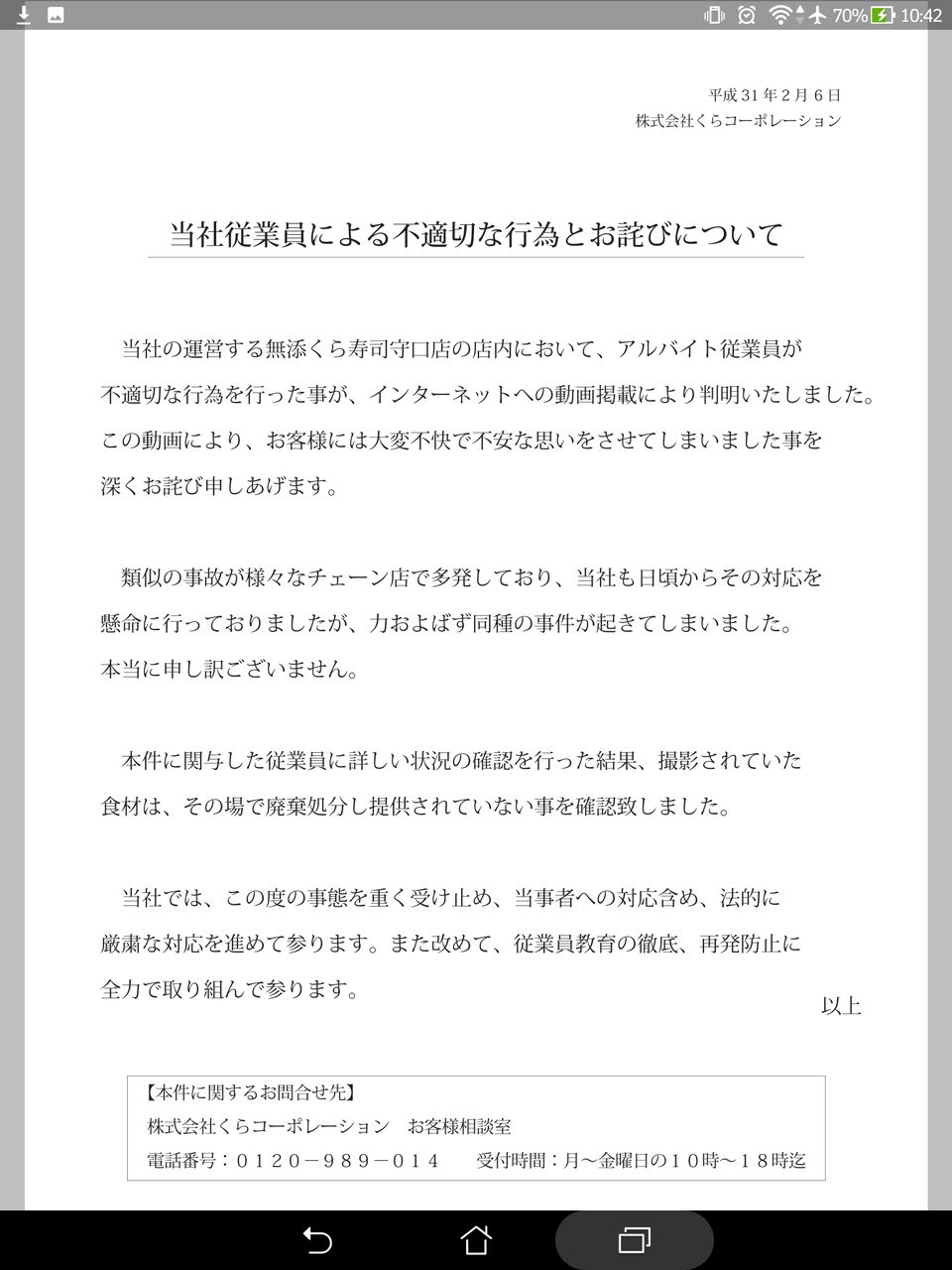 くら寿司さん、アホなバイトのせいで時価27億が3日で飛ぶ