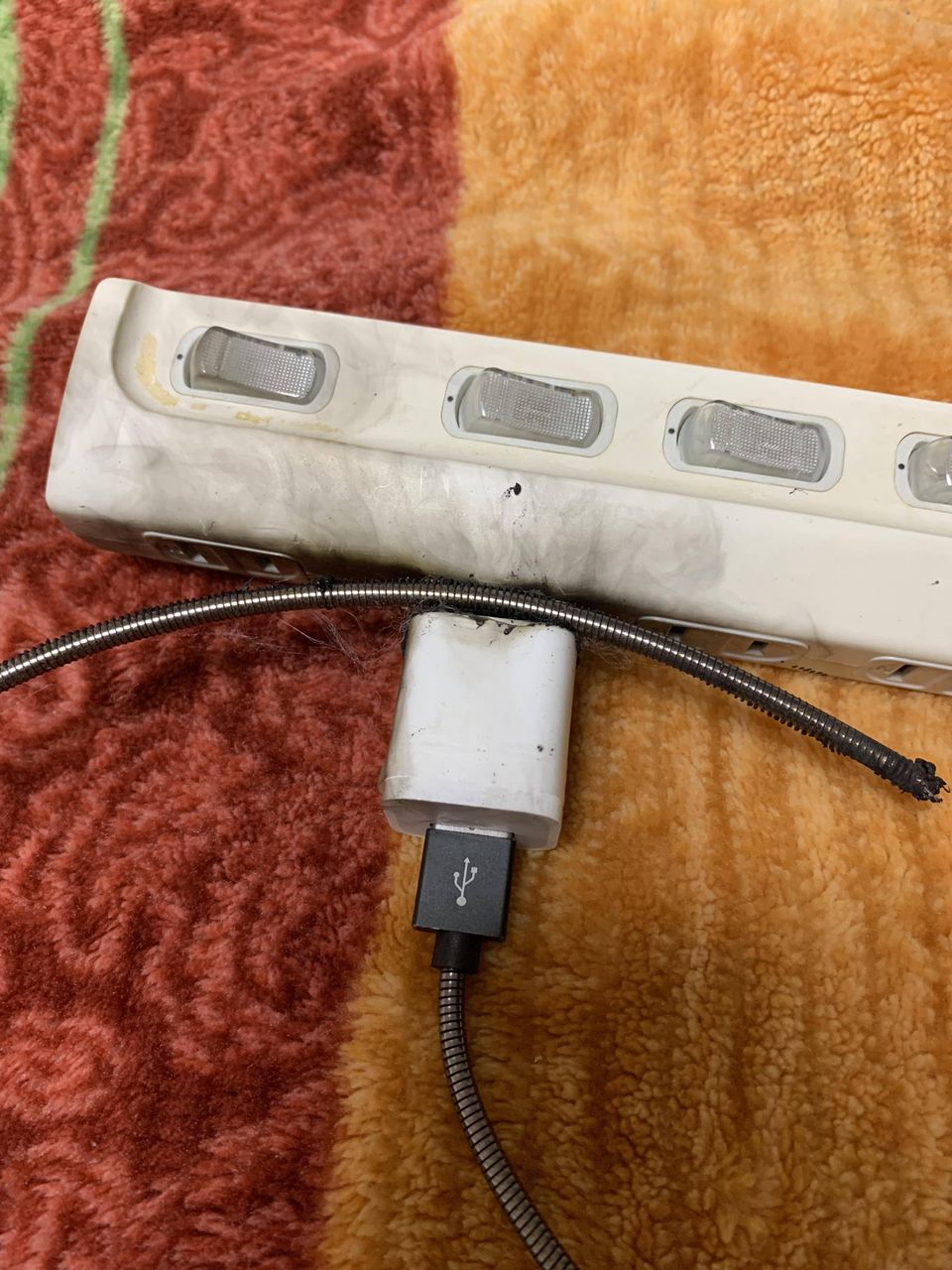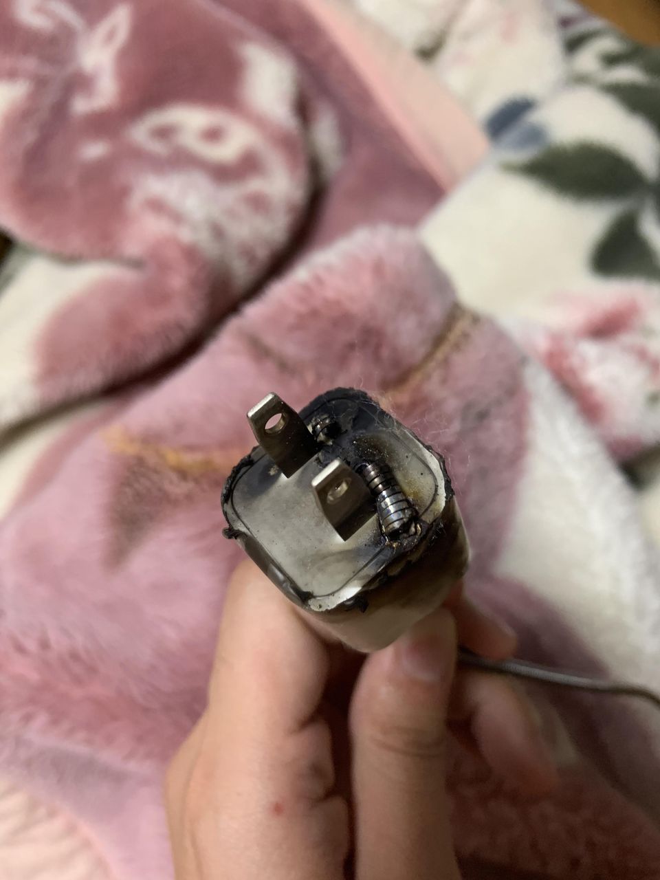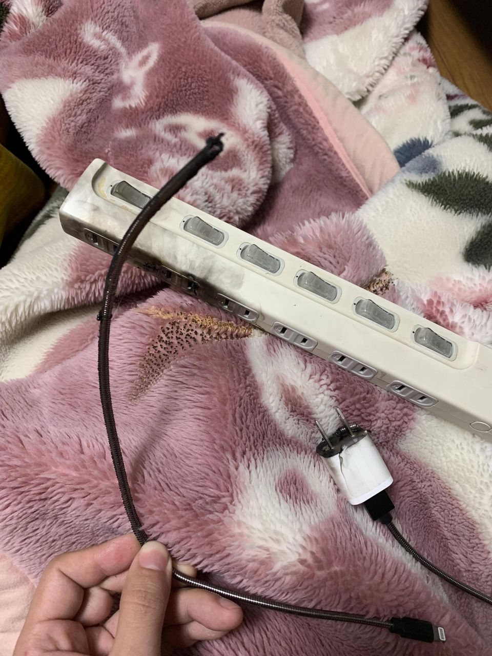 枕元でいきなりバチって音がして燃え出したから焦った