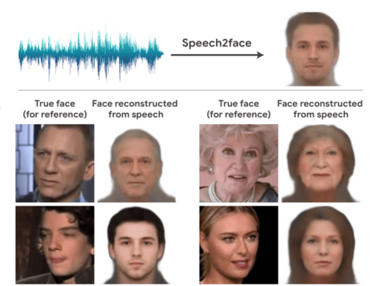 話者の年齢、性別、人種などの複数の属性を短い話セグメントを通して推測し、その後話者の顔を再構築することができます。