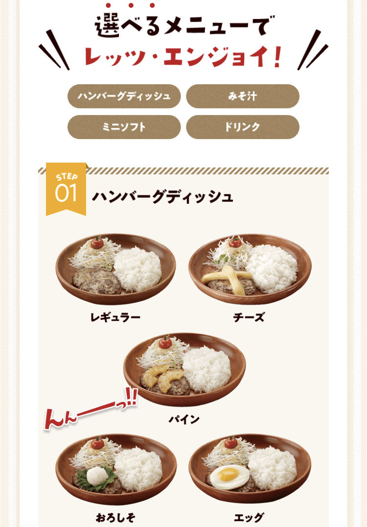 ハンバーグとご飯だけ交互に食ってるだと食べてて飽きるんだよな。