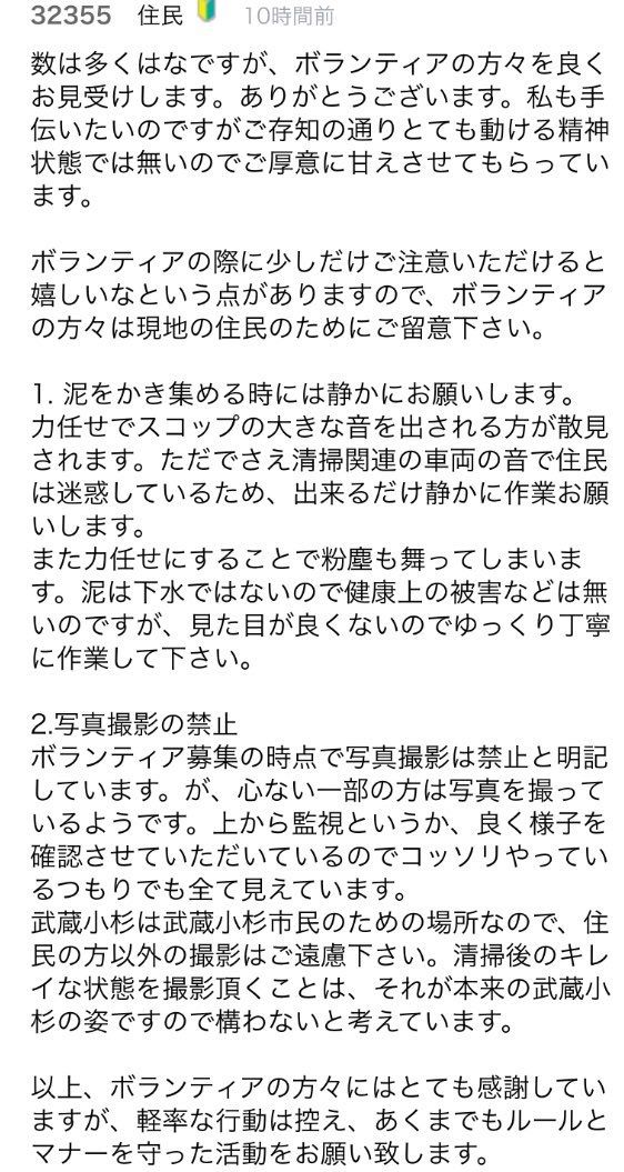 ボランティアの分際でムサコ住人に迷惑かけんなや
