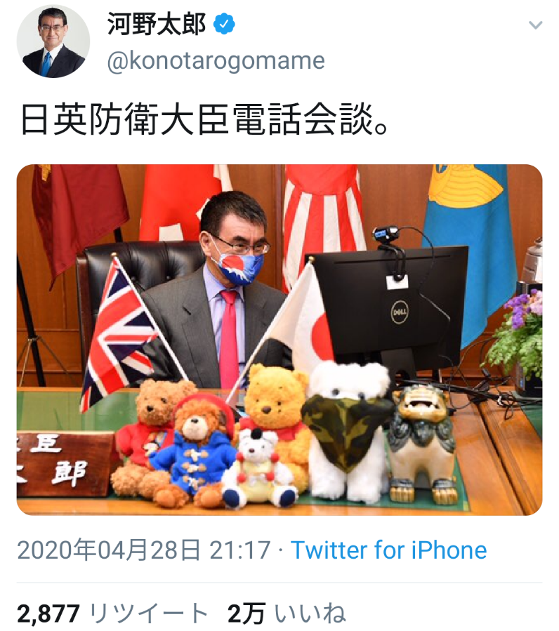 日英防衛大臣の電話会談のビジュアルが全世界をネタとして駆け巡るレベルだと話題に。
