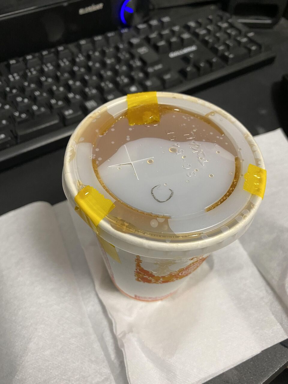 マクドナルドはフタ二重になってて横にしてみたけど漏れなかったな