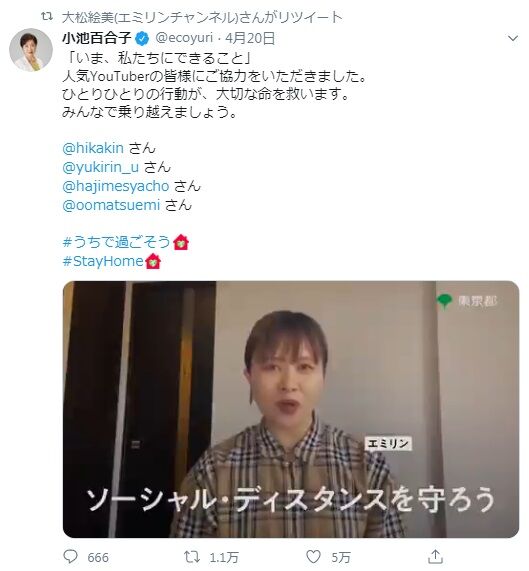 外出自粛を知らせてたのに自分は出歩いて買い物しまくってたから炎上した人か
