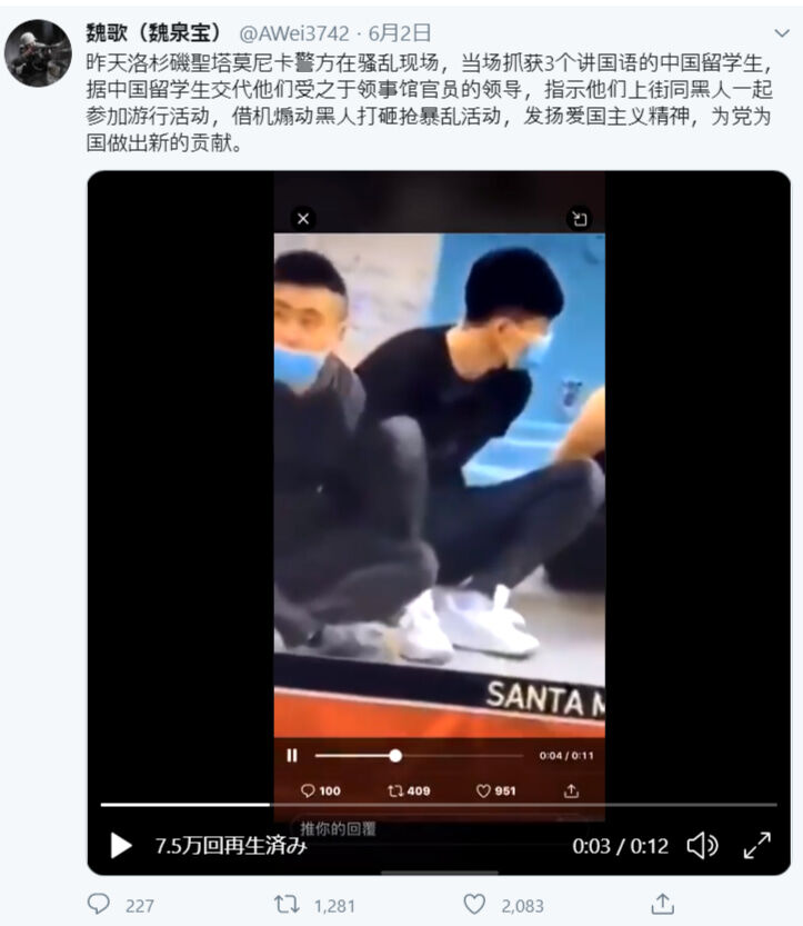 アメリカでデモを扇動して暴徒化させてた中国人留学生たちが逮捕された。