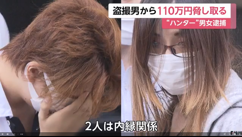 「盗撮ハンター」手口で110万円恐喝 容疑で男女逮捕「毎週やった」