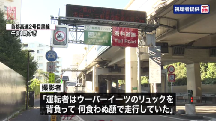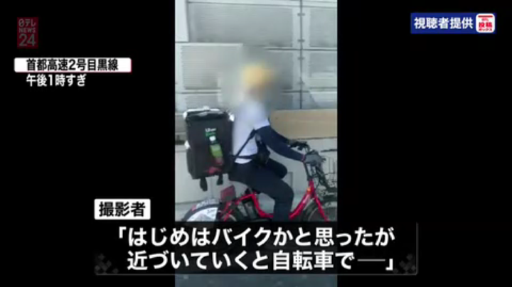 Uber配達員さん、また自転車で首都高を爆走