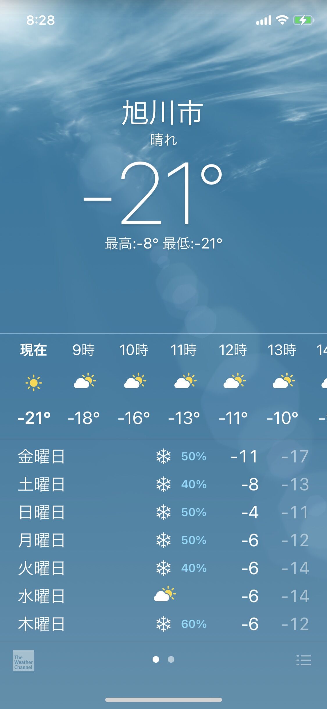 昨日今日-13℃下回ってるよ。