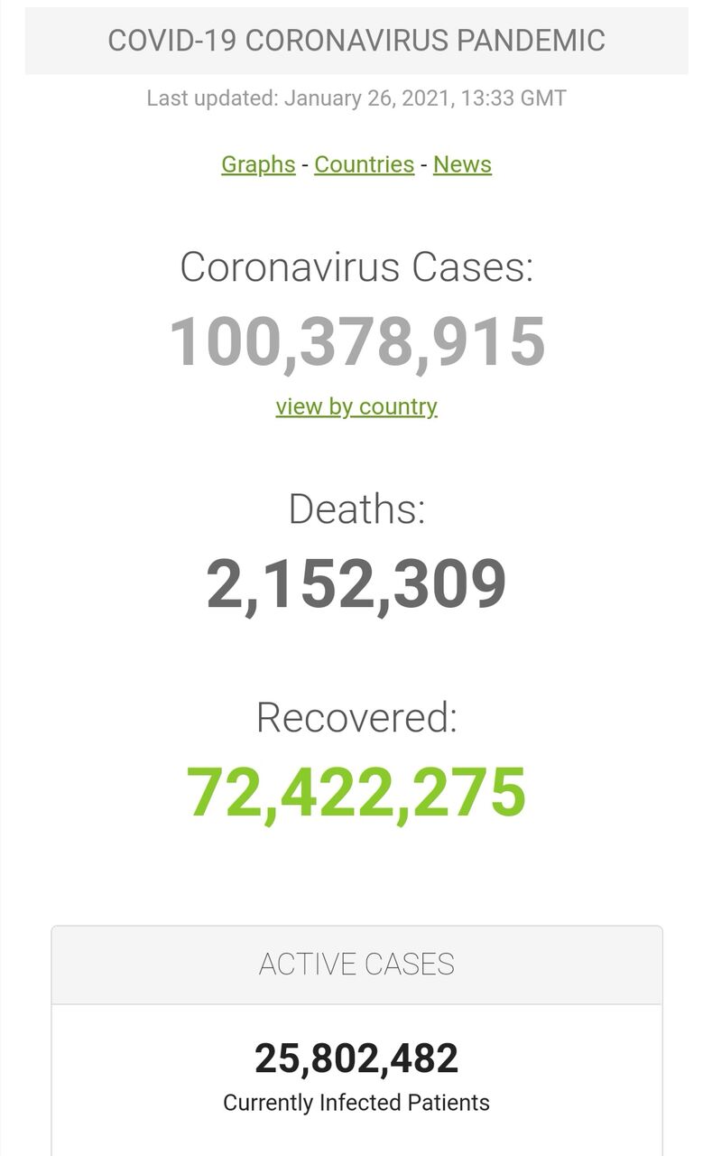 【速報】コロナ、ついに世界で1億人が感染