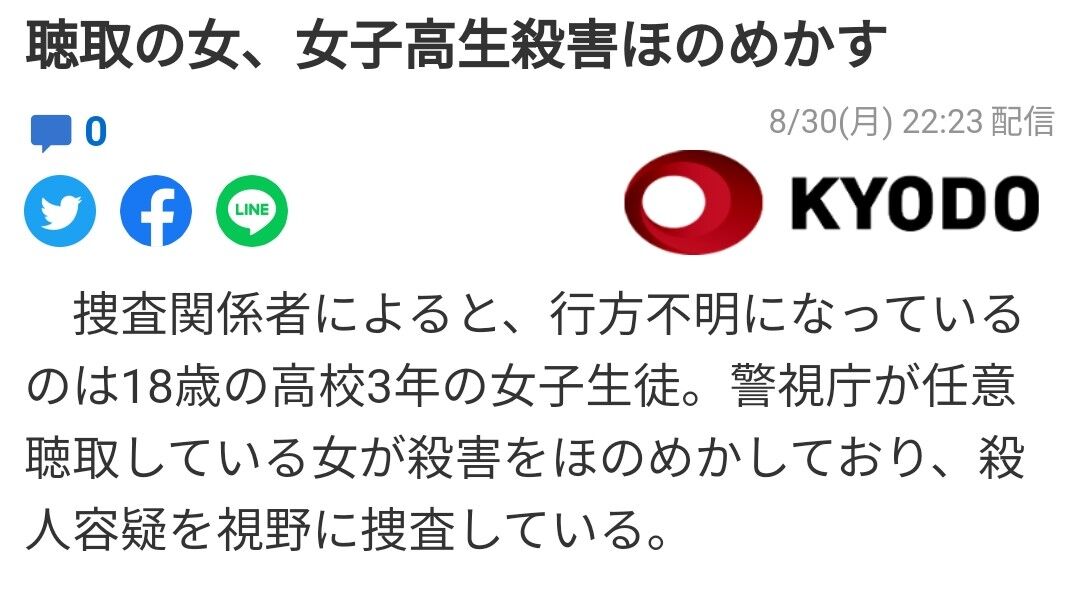 「女子高校生が行方不明」としか書かれていない速報テロップは斬新すぎたな