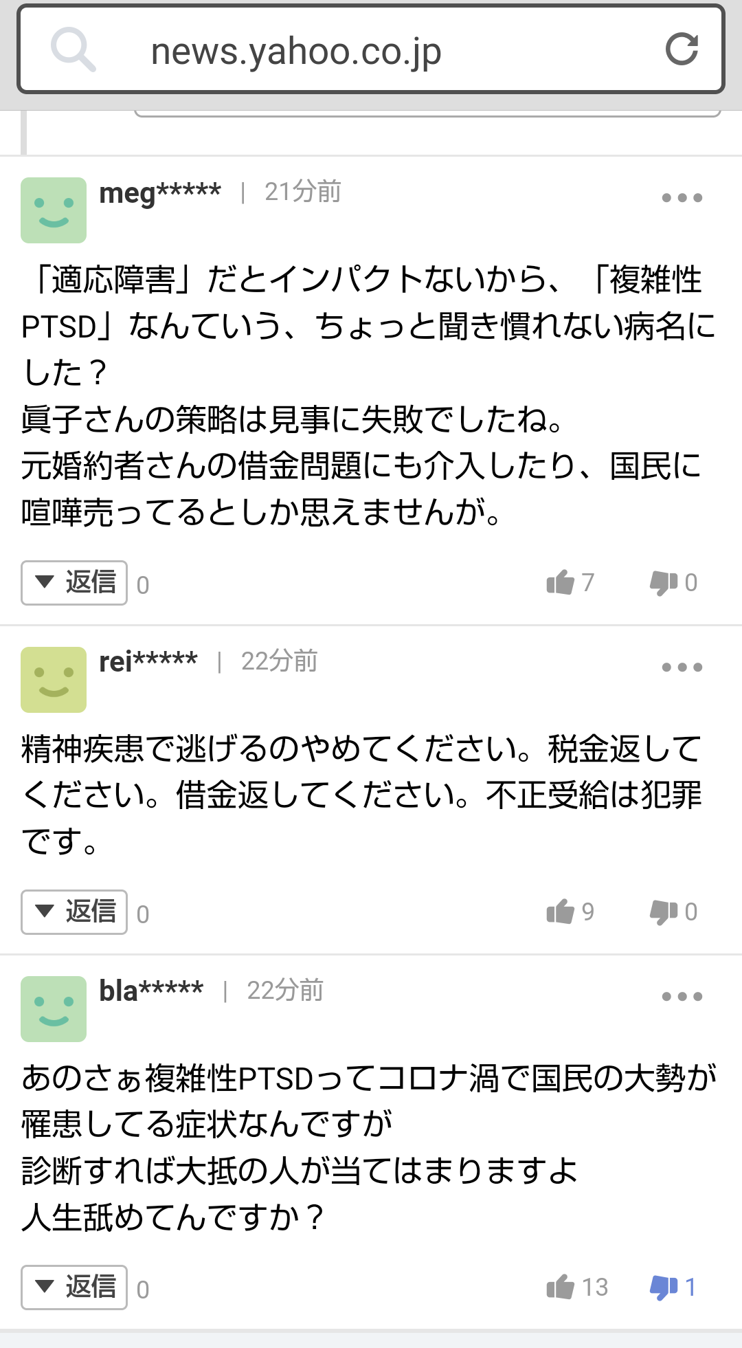 あなたがどのような感想を持とうが勝手ですが、個人的感想を眞子さまに押し付け、精神的に追い詰めることは良くないと思います。