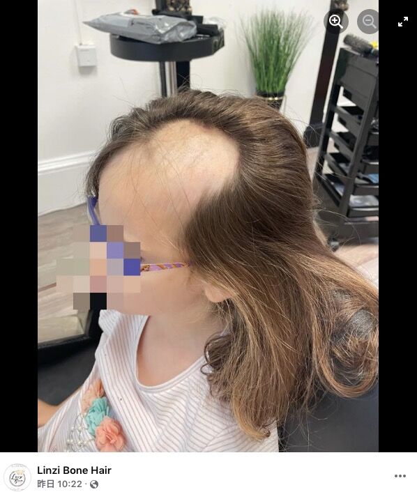 電動ミキサーによって髪が引き抜かれてしまった女児(画像は『Linzi Bone Hair 2021年10月28日付Facebook「Met theee most amazingly brave 5 year old」』のスクリーンショット)