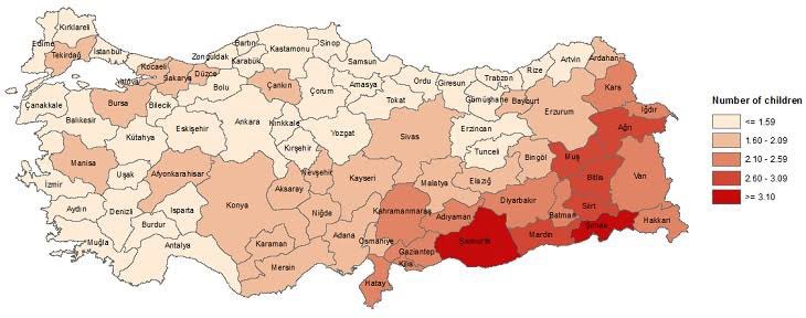 また、子供の数を見ると、クルド人領域では2.5人以上となっていて、女子教育がされていないことが分かる。