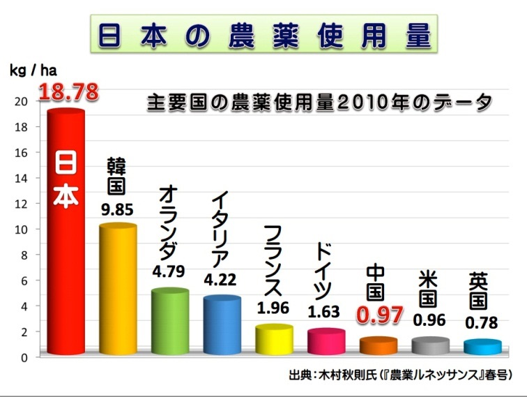 そりゃ日本は選択制の農薬使うから使用量は増えるが毒性は低い