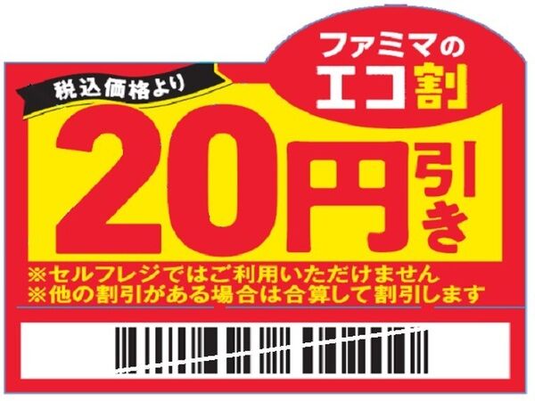 「ファミマのエコ割」の値下げシール(従来のもの)