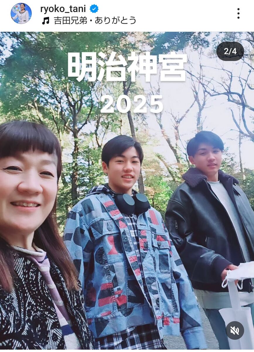 「明治神宮2025年 明けまして、おめでとうございます。皆様のご健康とご多幸をお祈り申し上げます。本年も、どうぞよろしくお願いいたします」とつづり、「#明治神宮」「#初詣」「#元旦」とハッシュタグをつけて報告。「長男よしあき、次男こうめい」と2人の息子と並んで歩く姿をアップし、フォロワーから「お子様たちのお顔拝見 一緒に行けるって、いいなぁ」「ちょっと見ない間にでかくなったね」「ご家族にとって素晴らしい一年になりますように」との声が寄せられた。