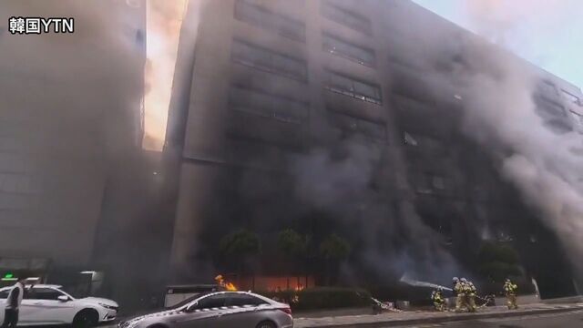 ビル火災を報じる韓国メディアの映像