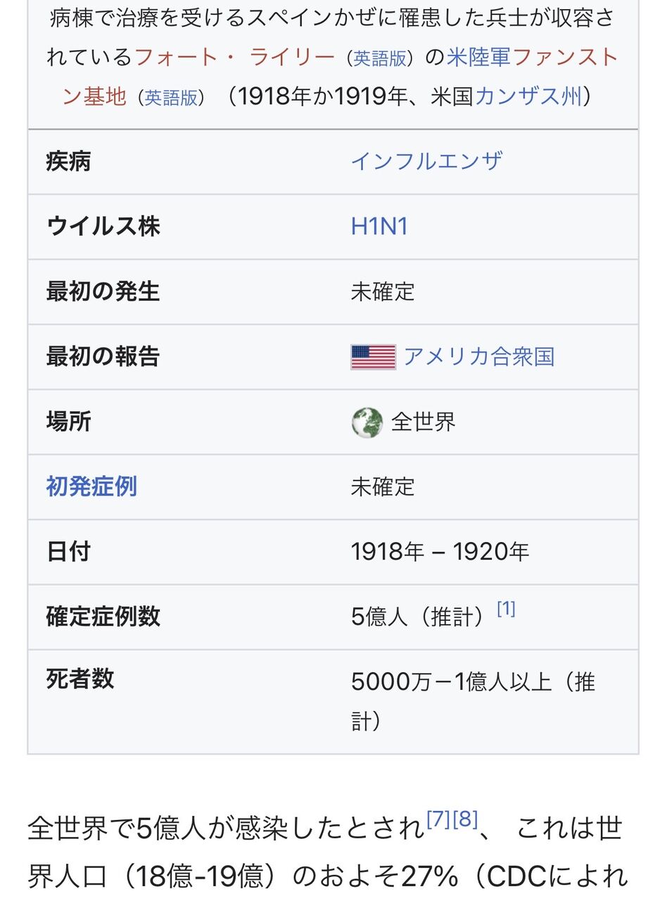 wikipediaの日本語ページかな? 英語サイトでも、Spanish flu になってない?